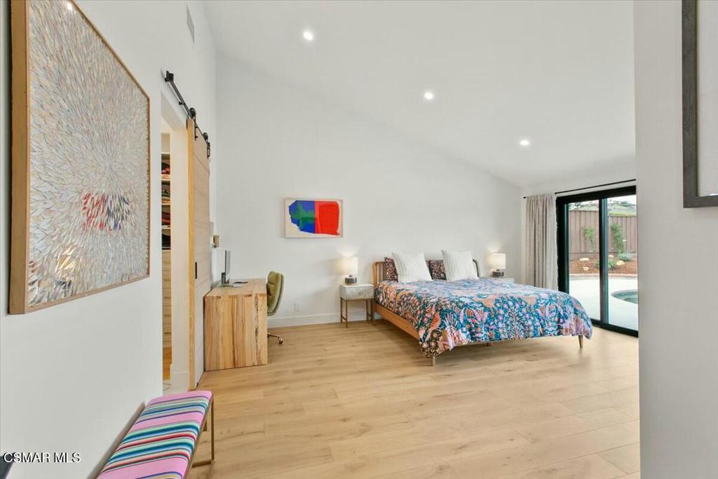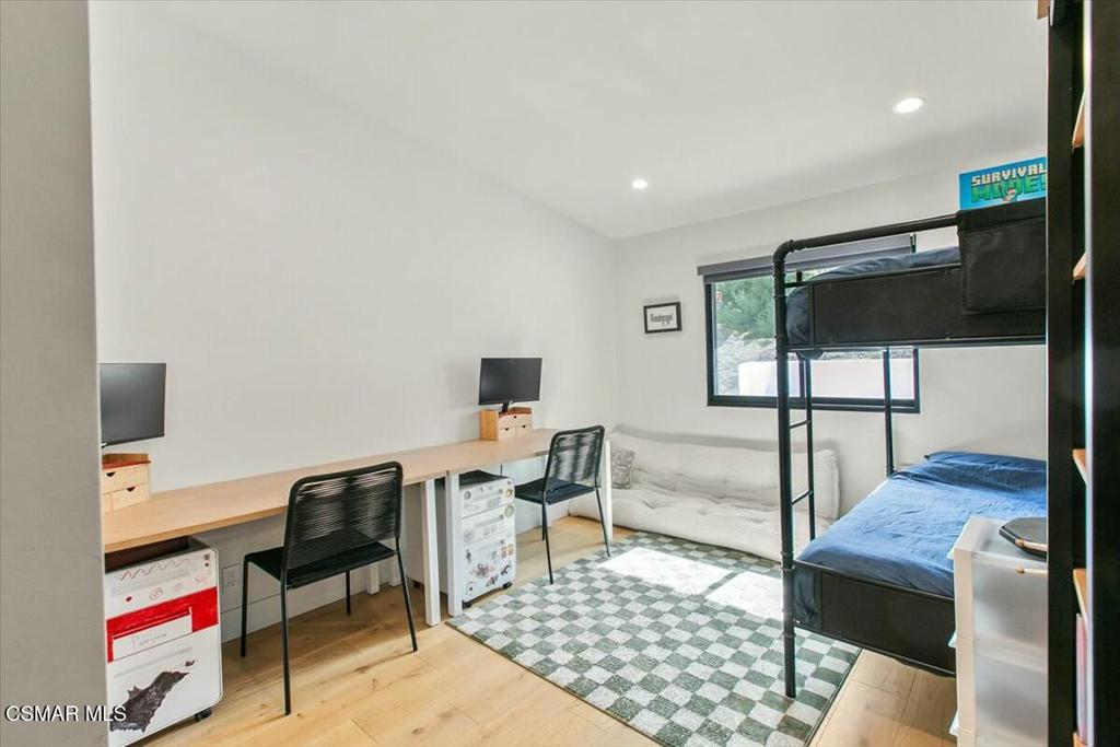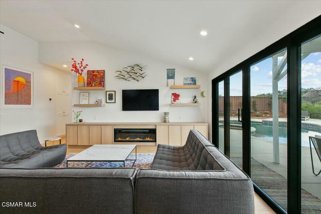 This fully renovated home was custom-designed for the prior homeowner, with no expense spared. Every detail, from the premium finishes to modern technology and luxury upgrades, was thoughtfully selected to create a truly one-of-a-kind home. This home is a true one story home with no thresholds, elevation changes, or interior steps. Perched in the hills of Westlake Village, this 4-bedroom, 3-bathroom single-story home spans 2,128 square feet on a 13,939 square foot lot. The rebuild includes all-new plumbing, electrical, HVAC, framing, drywall, and smooth-coat stucco exterior. Ceilings have been raised to an impressive 10.5 to 15 feet, enhancing the open and airy feel. The open-concept layout showcases all-new luxury Legend Windows & Doors, recessed lighting, and level 5 drywall finishes--a rare feature found only in the finest luxury homes.The great room is a striking focal point, featuring a Dimplex remote-controlled electric fireplace with customizable color settings, floating shelves, and a custom-built media unit. Commercial-grade sliding glass doors frame breathtaking panoramic views, seamlessly blending indoor and outdoor living. Smart home upgrades, including a Nest thermostat, smart irrigation system, recessed ceiling speakers, and a Sonos audio system, bring convenience and efficiency.At the heart of the home, the gourmet kitchen is designed with ample custom soft-close cabinetry, pull-out shelves, and quartzite countertops. Top-of-the-line Wolf and Thermador appliances provide performance and style, including a Wolf 8-burner gas range with double oven and a convenient pot filler, and a Thermador built-in soft-open refrigerator. The gorgeous and massive 12' x 6' honed quartzite kitchen island features a hidden 12 ft power strip under the counter.The primary suite is a private retreat, offering direct access to the backyard and pool through expansive sliding glass doors that invite in stunning hillside views. The luxurious en-suite bath includes an oversized glass-enclosed shower with seamless entry, linear drains, rainfall fixtures, and custom marble-inspired tilework. A floating backlit mirror, dual vanities with quartzite countertops, and a custom-built walk-in closet complete this serene escape.Three additional bedrooms provide ample space for family, guests, or a dedicated home office, some featuring custom modern wood sliding closet doors and recessed lighting. The front bedroom is upgraded with custom built-in cabinetry, a remote-controlled gas fireplace, and an en-suite bathroom with seamless entry. The additional bathrooms offer similar tile work, sleek designer hardware, and custom vanities with ample storage.The fully remodeled backyard is built for both relaxation and entertaining. A brand-new concrete deck leads to the PebbleTec pool and spa, set against breathtaking Westlake Village views. All-new drought-tolerant landscaping, flagstone terrace, and a smart irrigation system ensure a low-maintenance outdoor retreat.Additional features include: Keyless entry, linear vents, a brand-new tankless water heater, brand new whole house water filtration system, EV charger and a pet washing station in the garage. The home can be purchased fully furnished--dishes, linens and all--making it a truly turnkey luxury living experience.This home is as functional as it is beautiful. No detail has been overlooked--this home is move-in ready with every modern upgrade.